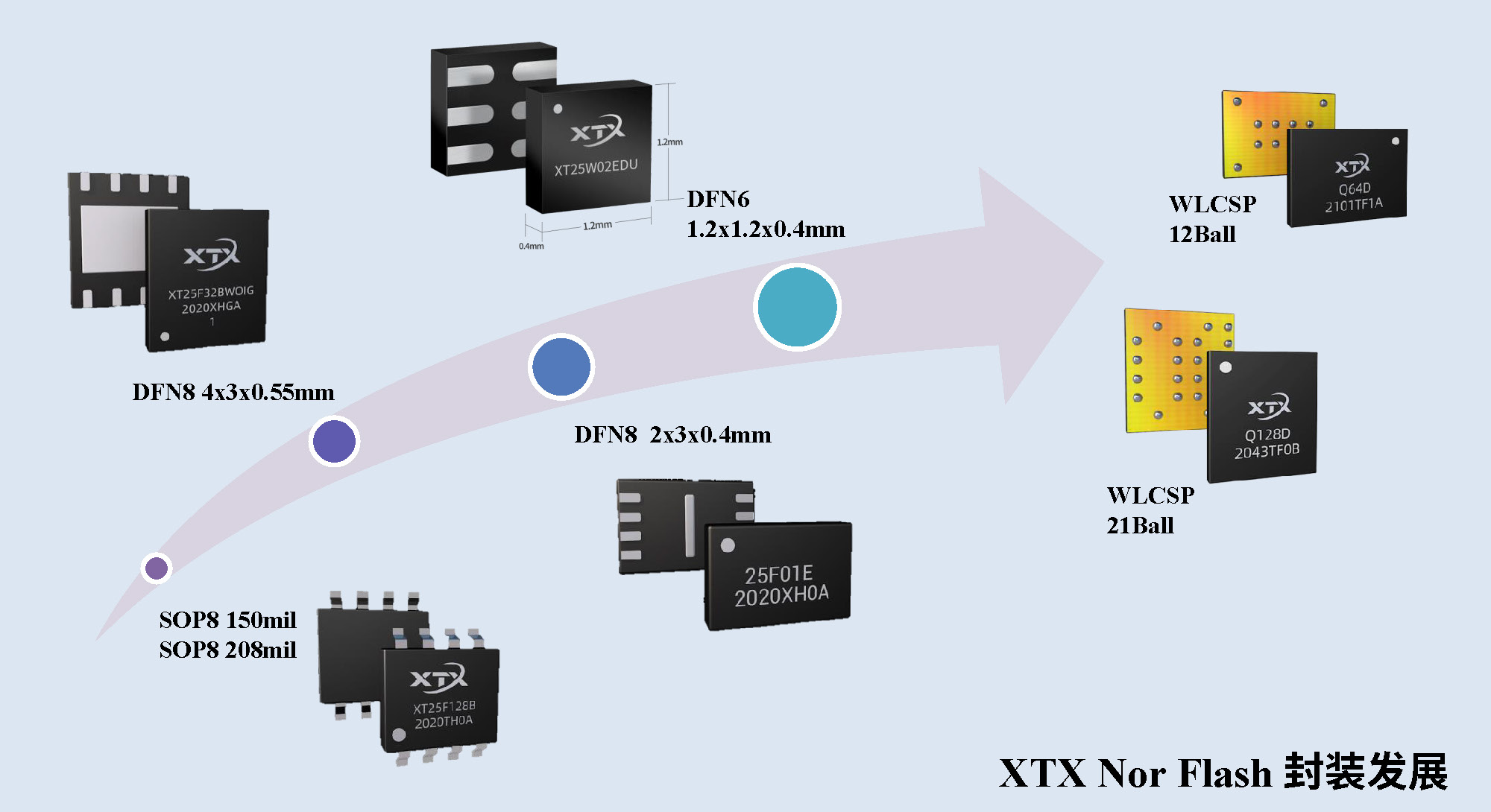 芯天下在面对市场机遇时适时推出了业内超小的dfn封装(1.2*1.2*0.4mm),同时在适配更先进封装技术的探索上未停下脚步。随着业内wlcsp封装技术的不断成熟,芯天下在2020年开始导入wlcsp的封装并已通过全面考核,将于2021年q1季度正式推出1.8v 64mb &128mb的wlcsp封装,后续会陆续推出全系列容量的wlcsp封装满足客户需求。